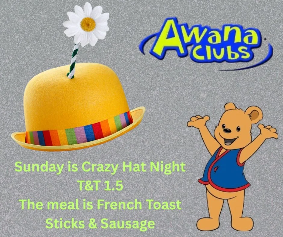 AWANA club starts at 4:00 - 5:30 pm with a meal from 5;30 - 6:00 pm. Click the button below to register! Everyone is welcome!