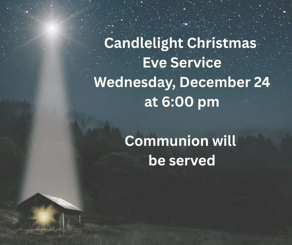 Christmas Eve Service will be Wednesday, December 24 at 6:00 pm